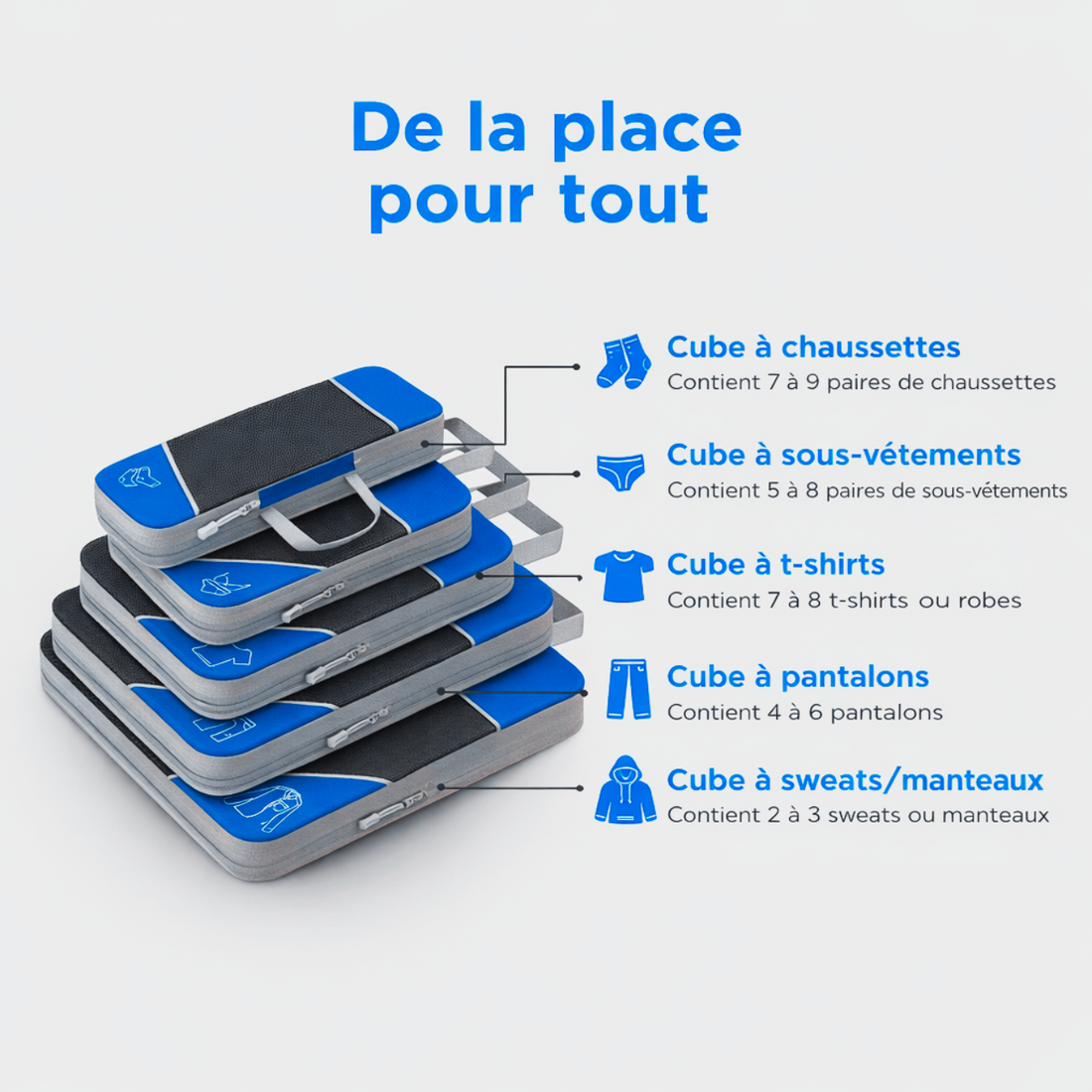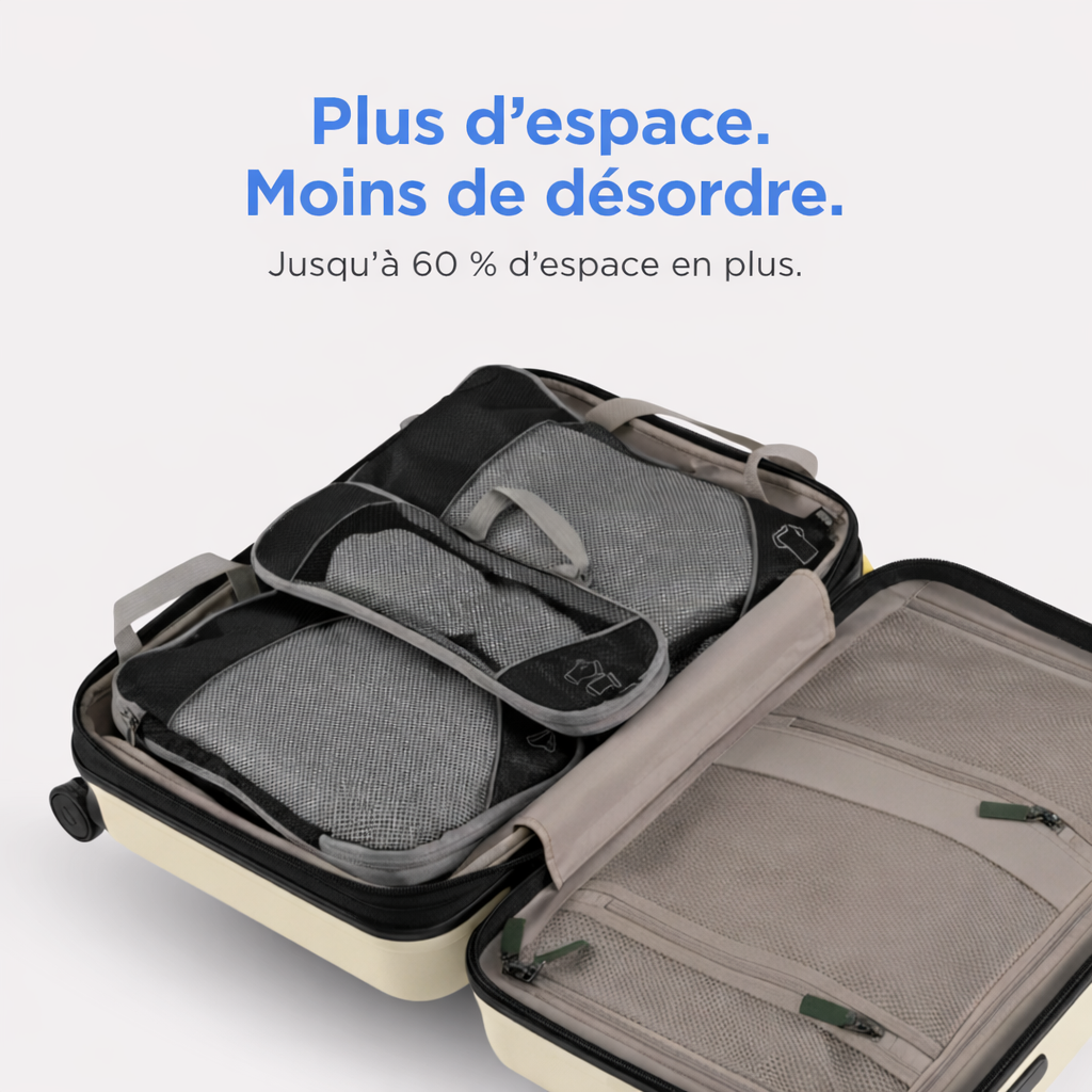 Voyagez léger, organisé et sans stress grâce à notre cube de compression de voyage. Fini les valises encombrées !